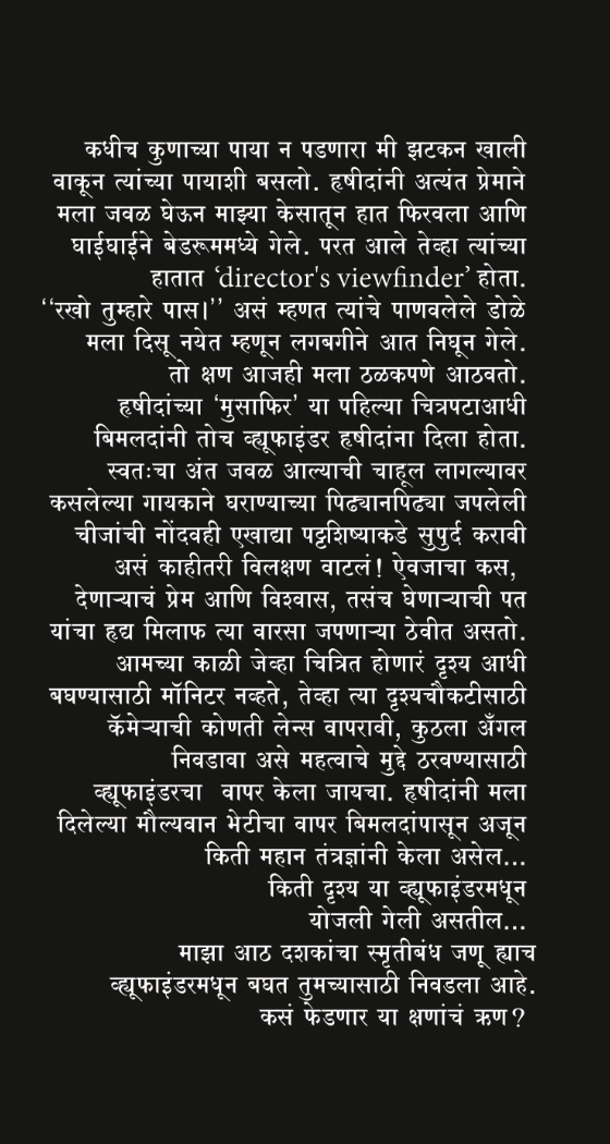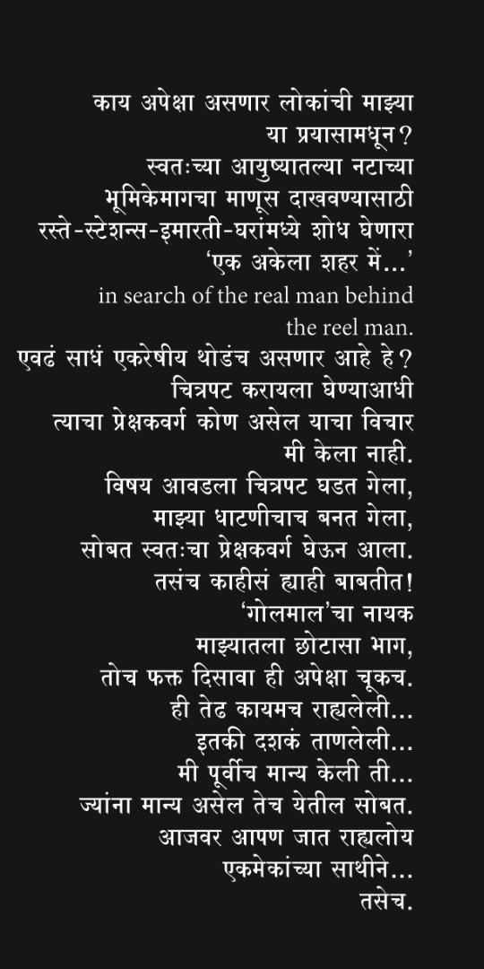हे पुस्तक केवळ एका कलाकाराचा प्रवास नाही; हे एका माणसाचं आत्मचिंतन आहे. यातून आपण जीवनातील साधेपणाचं सौंदर्य आणि स्वाभिमानाची ताकद अनुभवतो.”