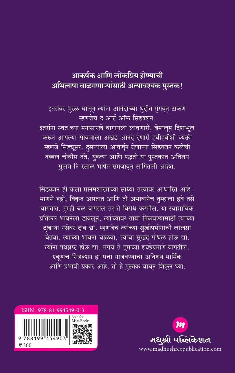 इतरांवर भुरळ घालून त्यांना आनंदाच्या धुंदीत गुंगवून टाकणे म्हणजेच द आर्ट ऑफ सिडक्शन. इतरांना स्वतःच्या मनासारखे वागायला लावणारी, बेमालूम दिशाभूल करून आपल्या सावजाला अखंड आनंद देणारी हवीहवीशी व्यक्ती म्हणजे सिड्यूसर. दुसऱ्याला आकर्षून घेणाऱ्या सिडक्शन कलेची तब्बल चोवीस तंत्रे, युक्त्या आणि पद्धती या पुस्तकात अतिशय सुलभ नि रसाळ भाषेत समजावून सांगितली आहेत.